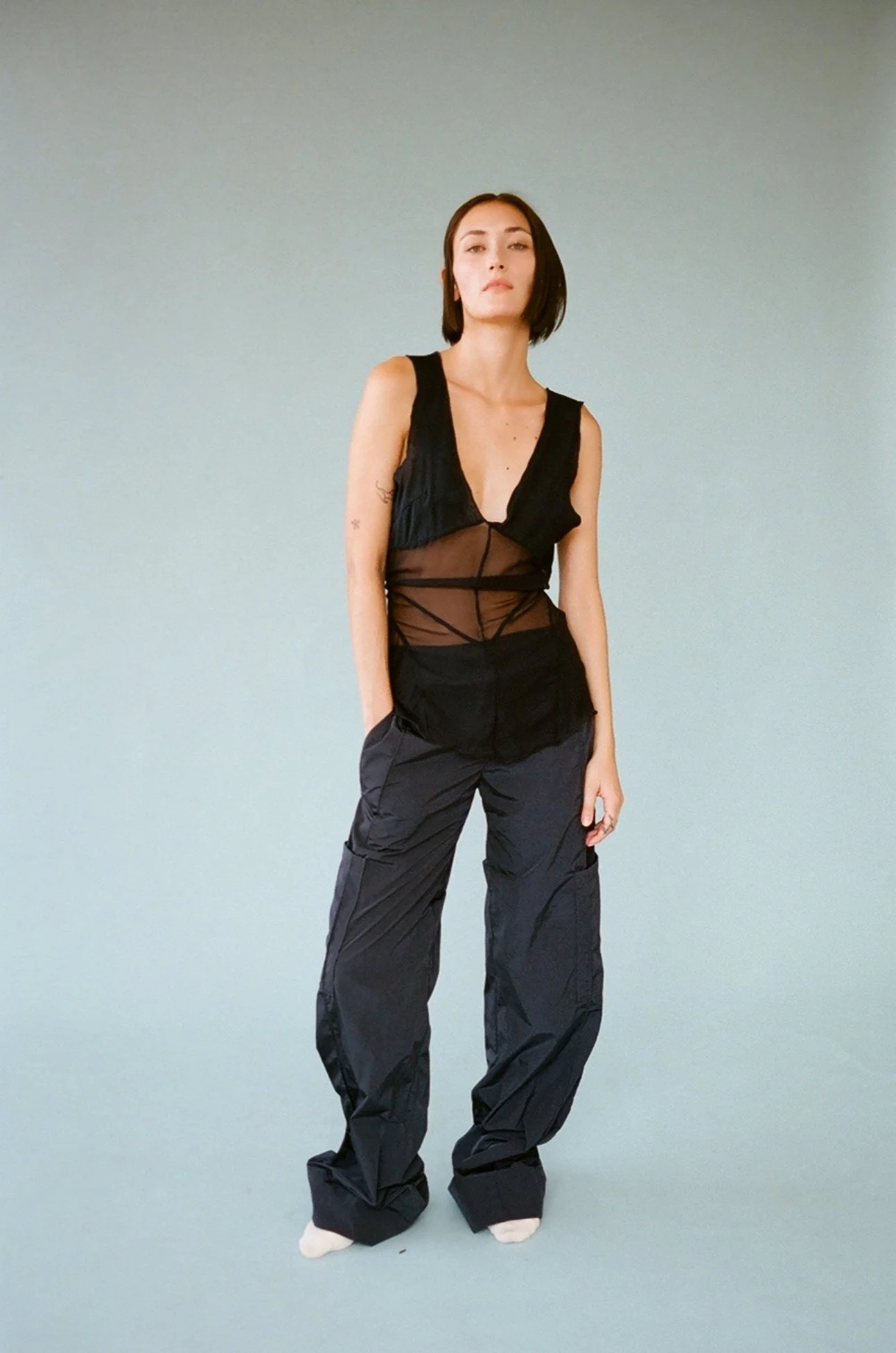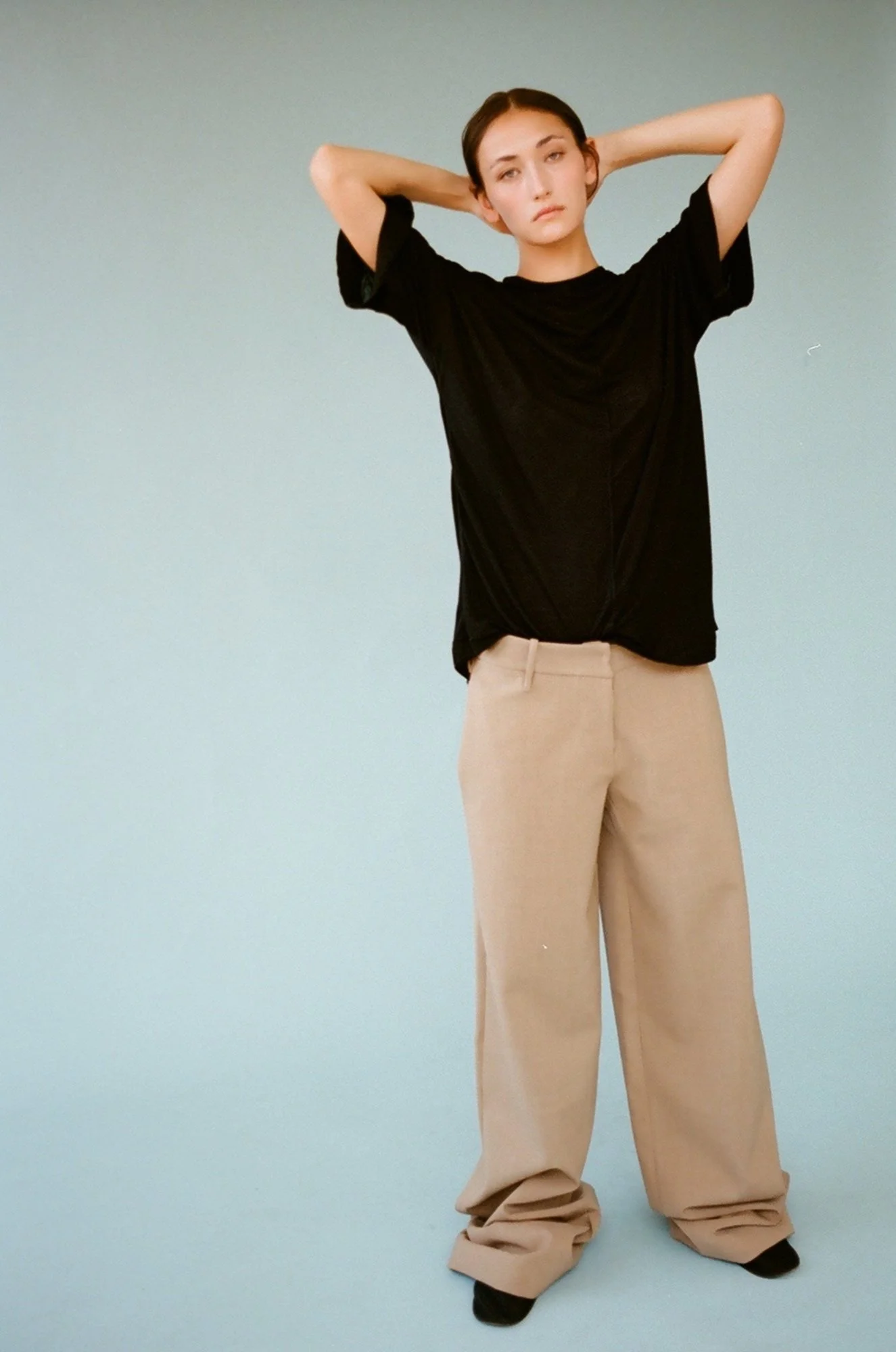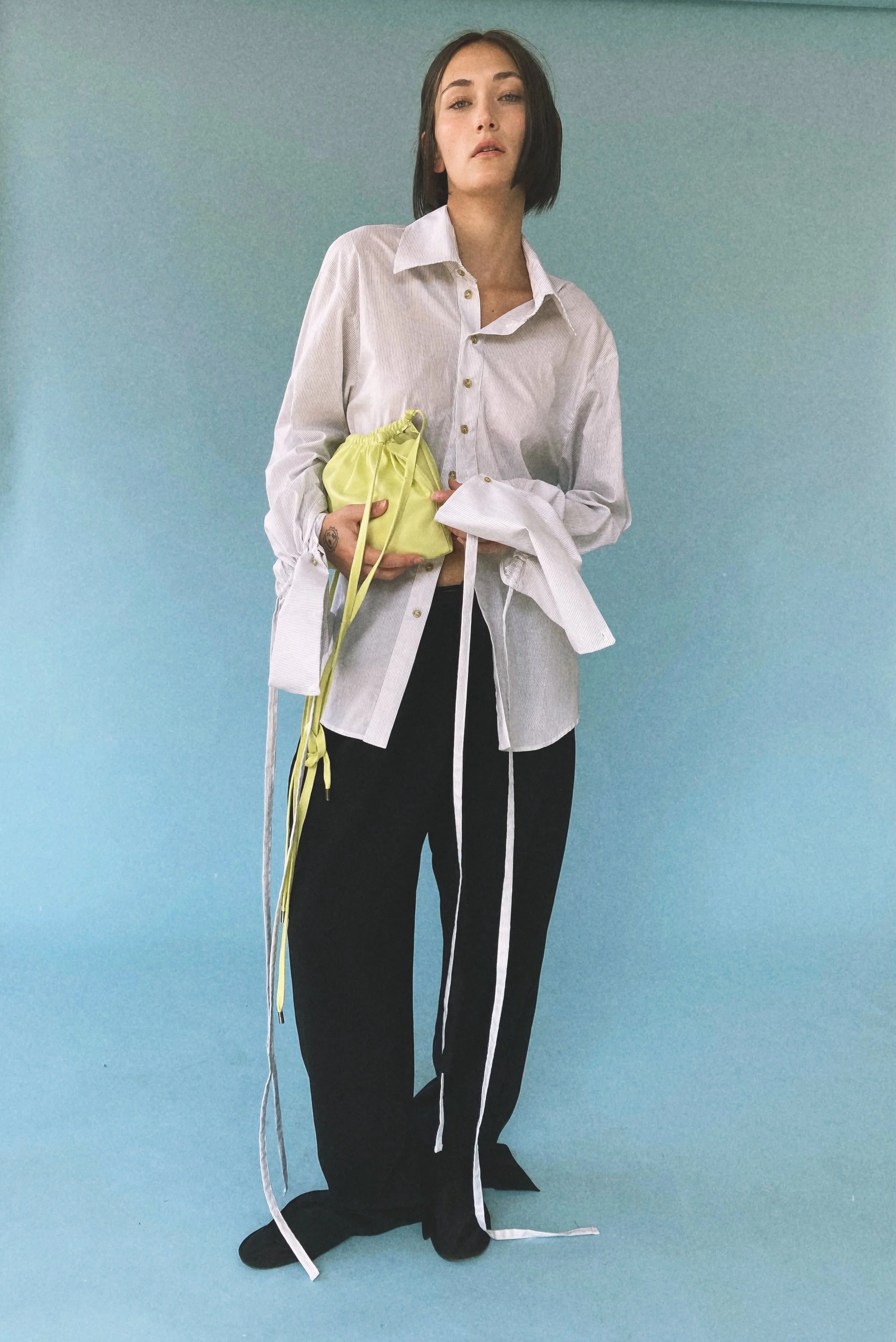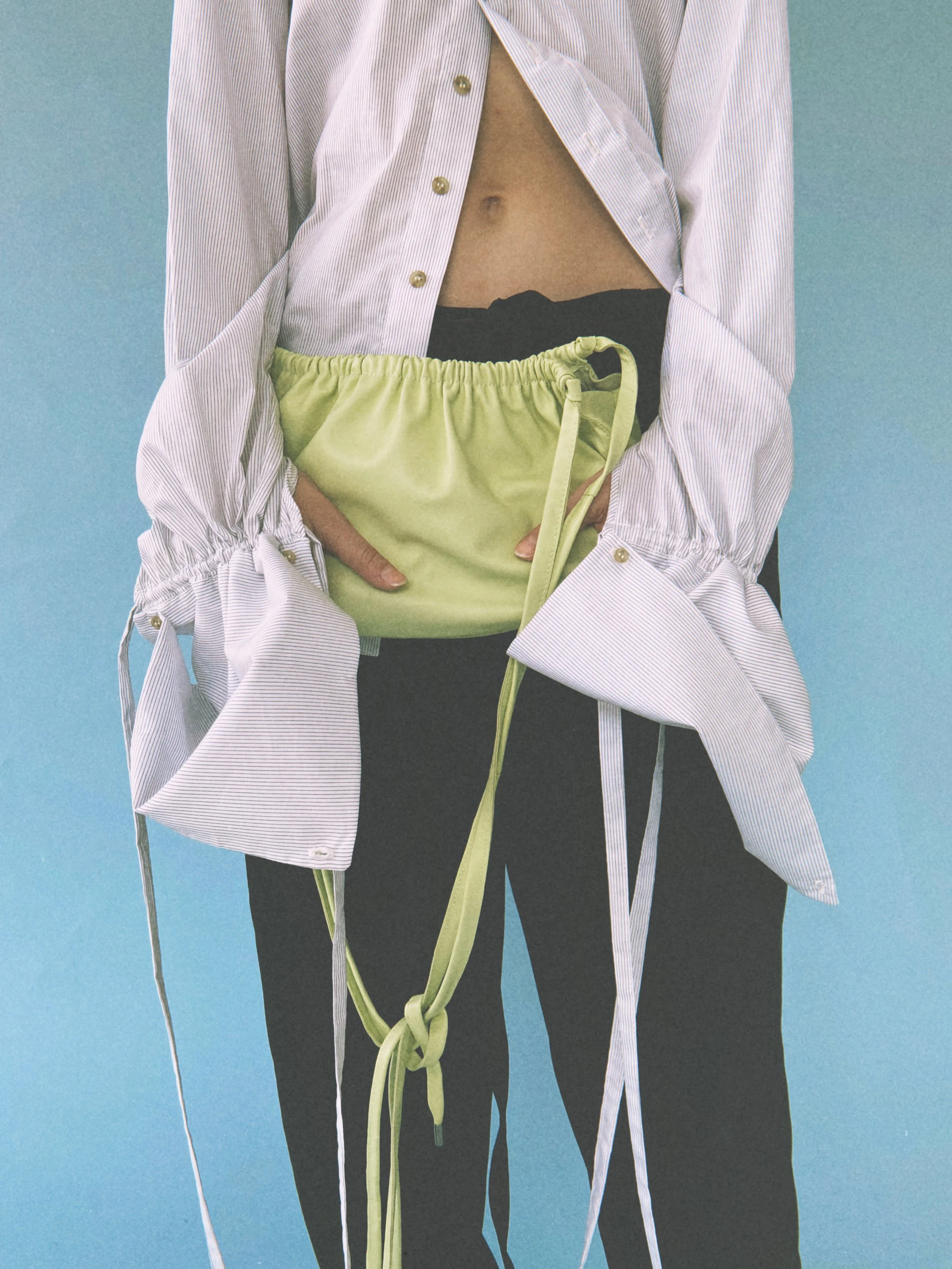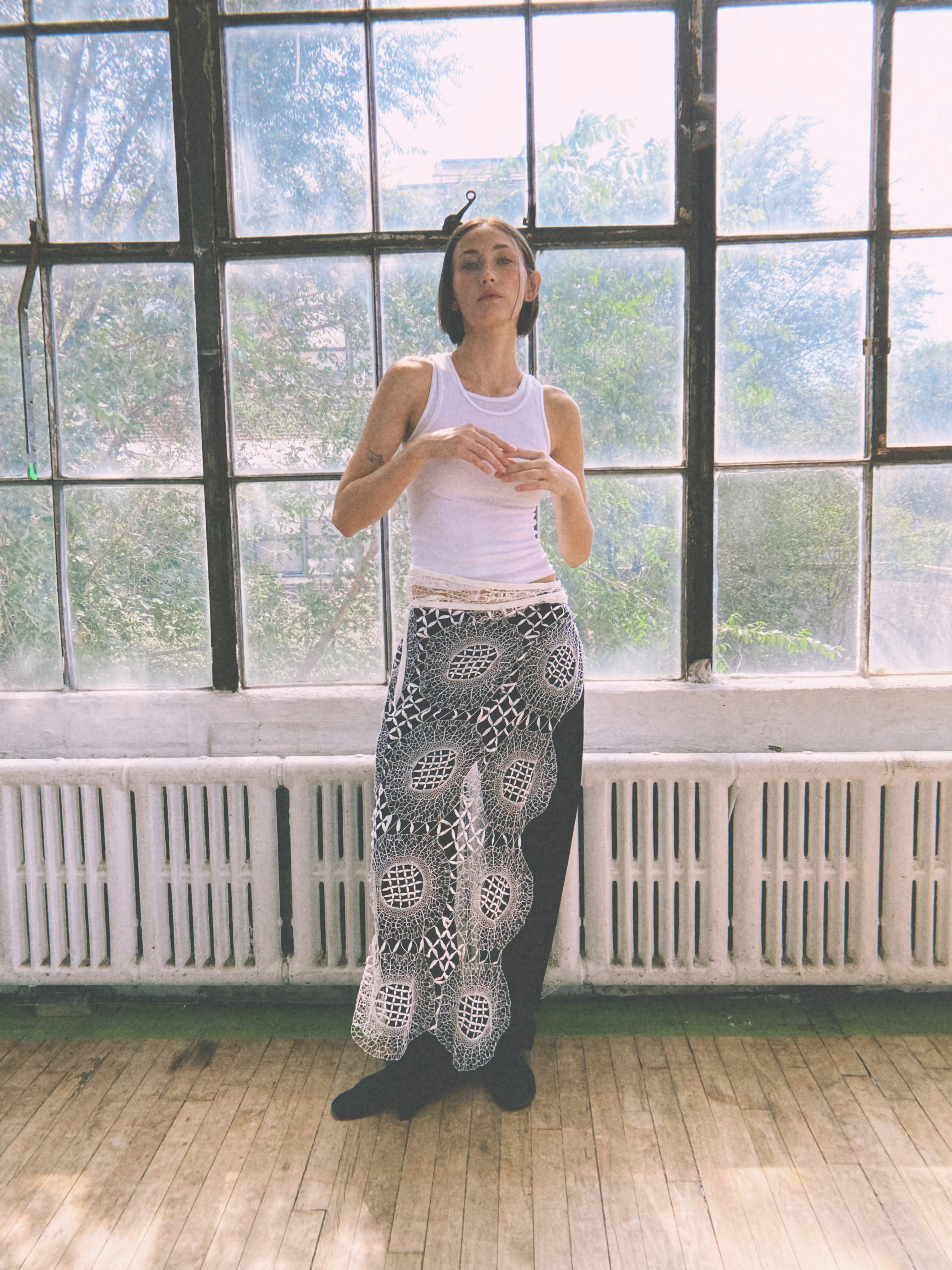 A collection conceived from a time of a new found solace and peace. Inspired by the softness and comforts of home and designed to have a beautiful sense of ease and fluidity. Created from repurposed fabrics and up cycled vintage and found textile objects from the home.